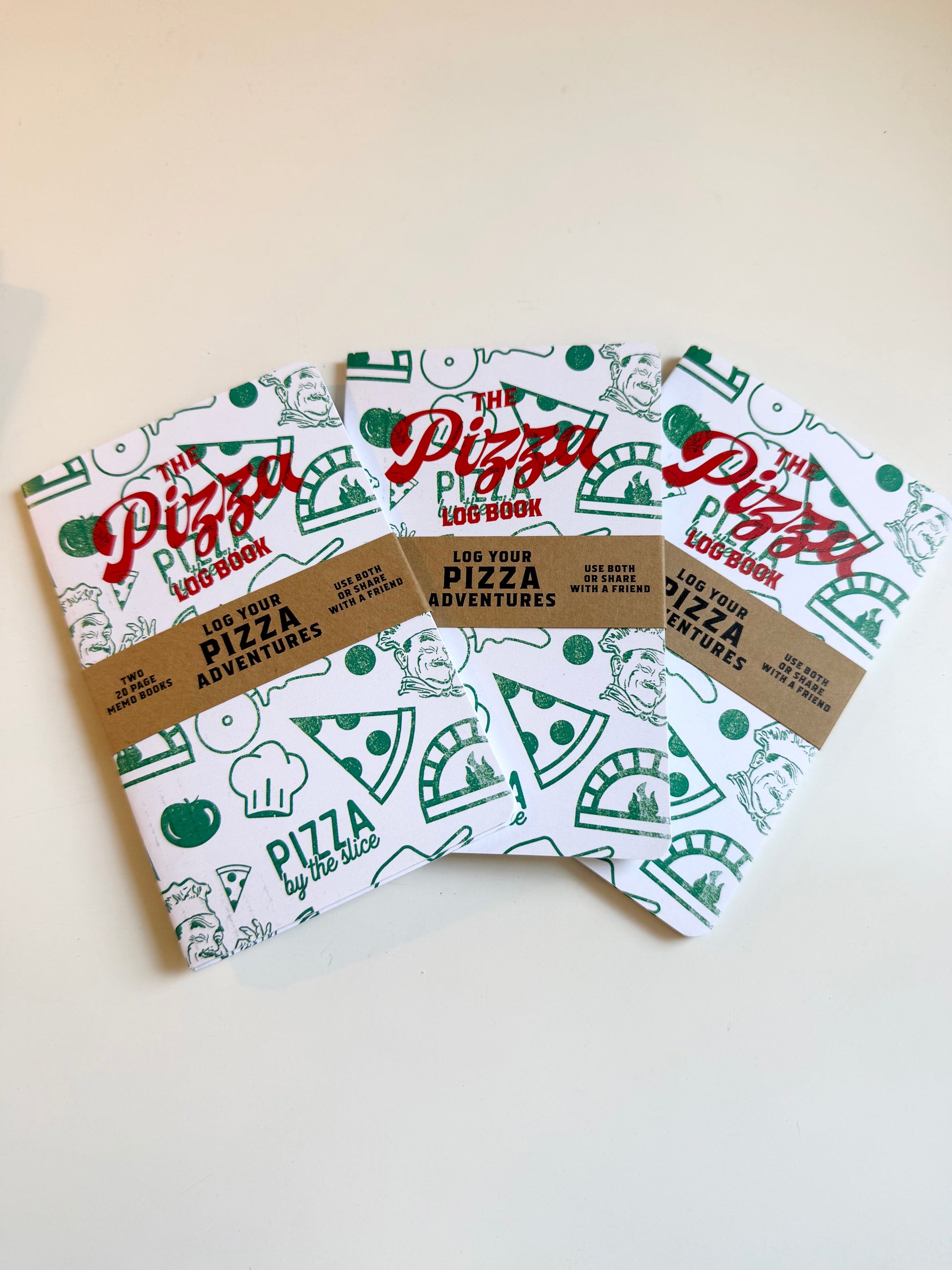 Log your pizza journey with The Pizza Log Book. Made in Texas by Justin Ryan Books, this set of 2 notebooks is a fun way to document memorable meals. Each book is 3.5 x 5.5 inches. The perfect size for your purse or pocket.